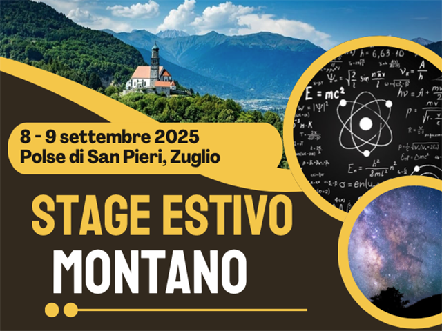 Anche quest'anno si rinnova l'appuntamento con lo Stage estivo montano per le scuole superiori alla Polse di San Pieri a Zuglio (UD), organizzato dal il Piano Lauree Scientifiche con il Dipartimento di Fisica e la sezione di Trieste dell'Istituto Nazionale di Fisica Nucleare.